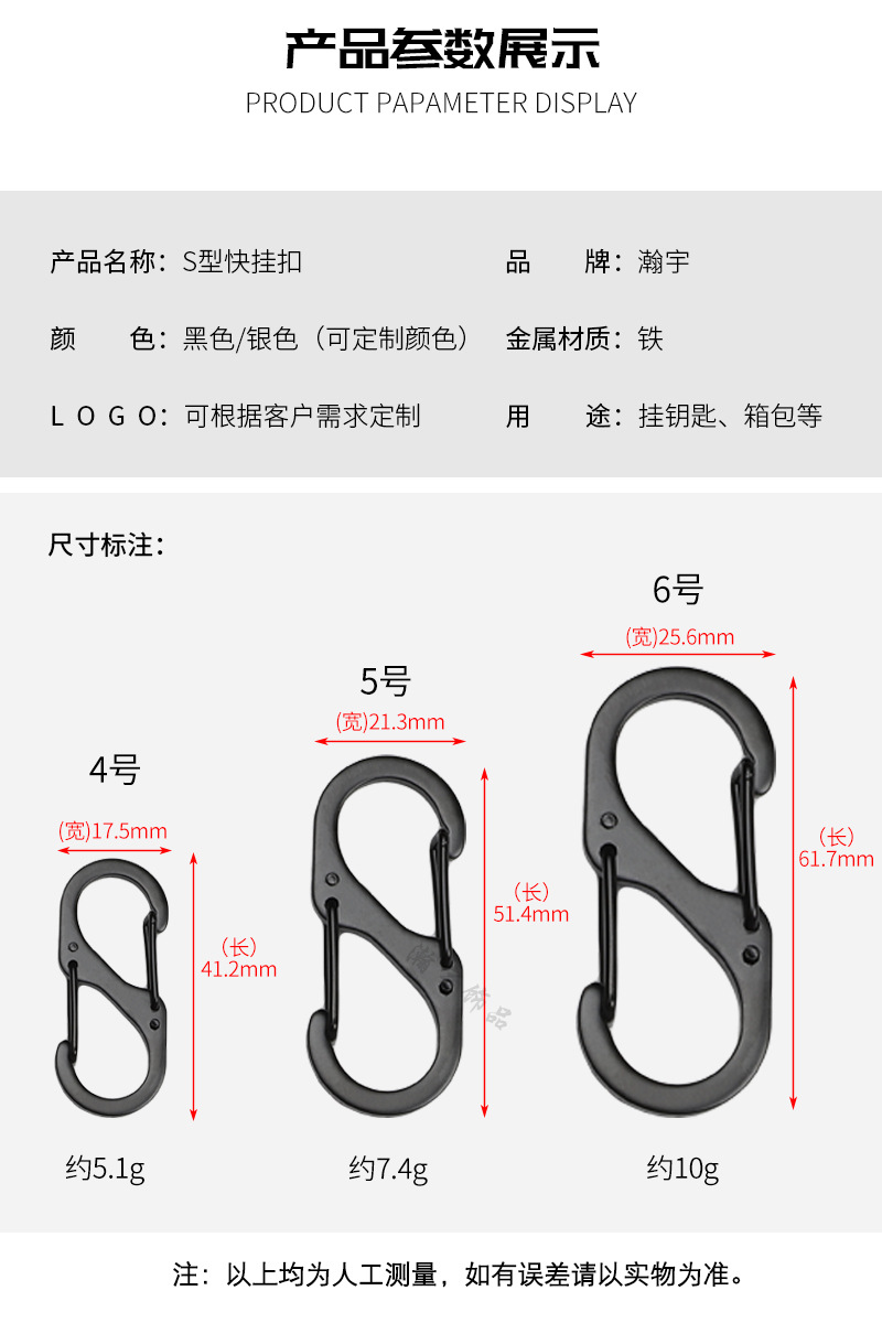 厂家供应S型不锈铁登山扣户外露营快挂扣多功能金属双挂8字扣挂钩