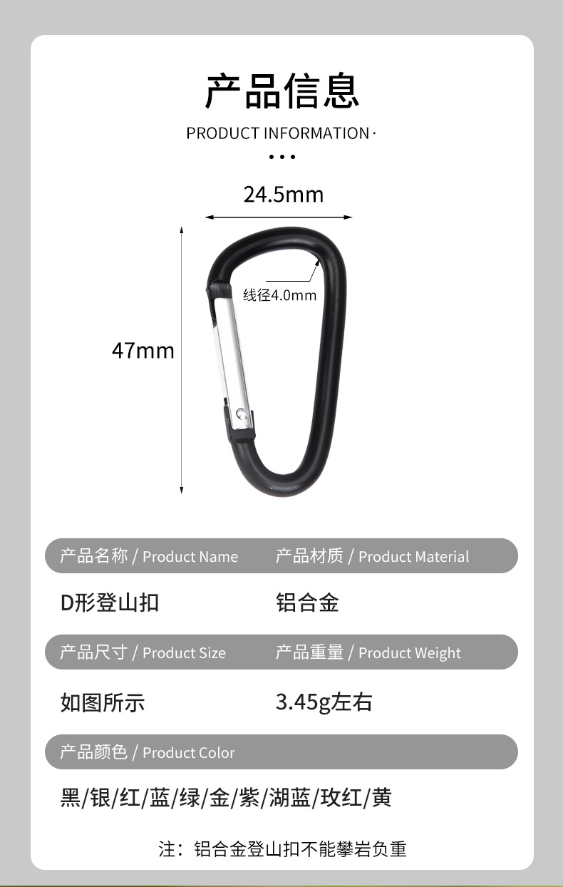 厂家批发5号D形4.0线粗款铝合金登山扣户外露营背包耳机装备挂扣