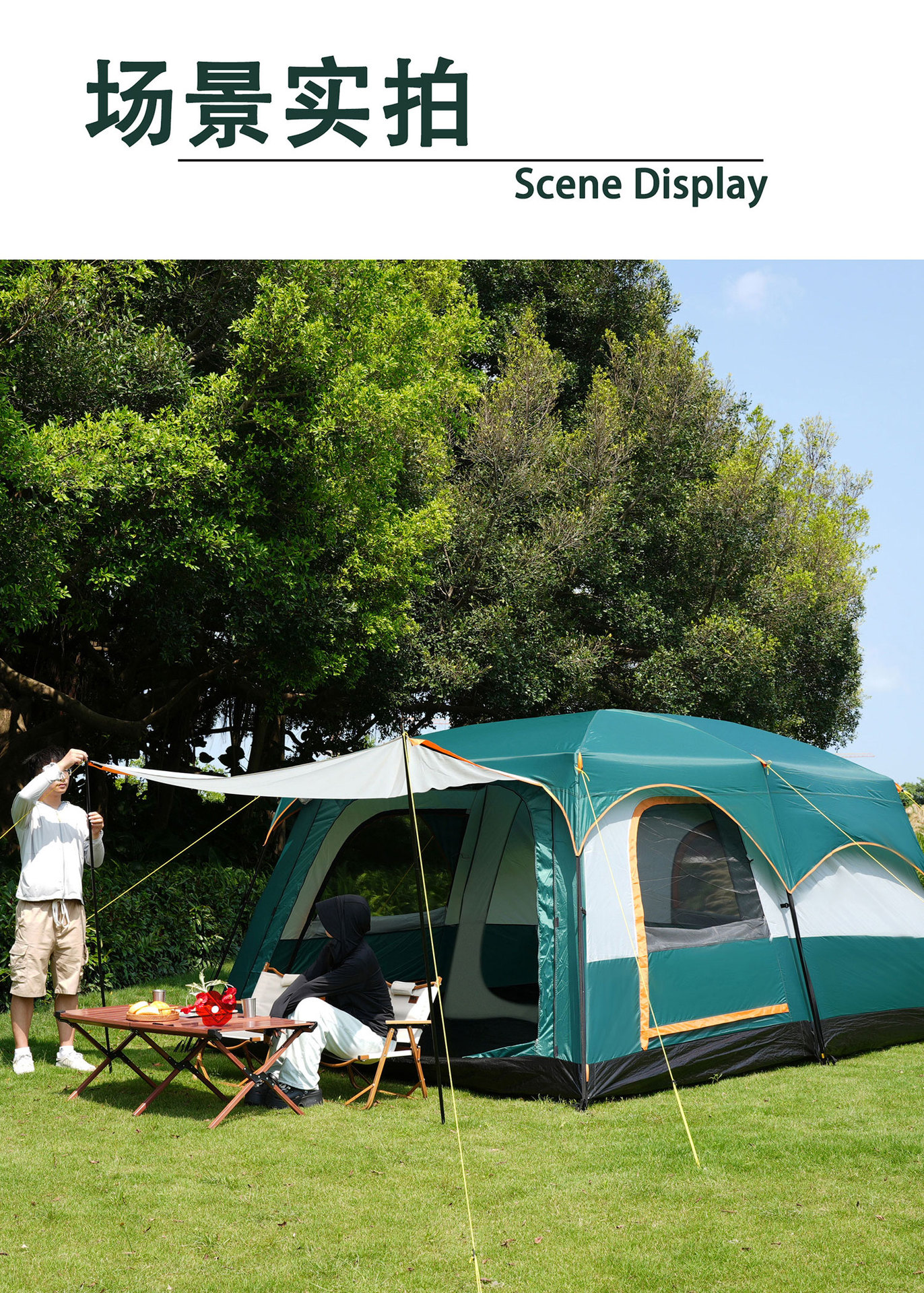 096 full series outdoor tent two bedrooms and one living room folding portable sunscreen waterproof 3-12 people camping tent