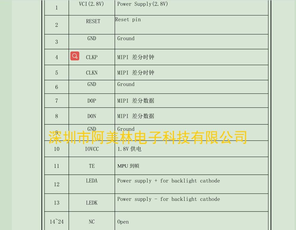 | 接口 | :MIPI | pin口数 | :24 PIN |