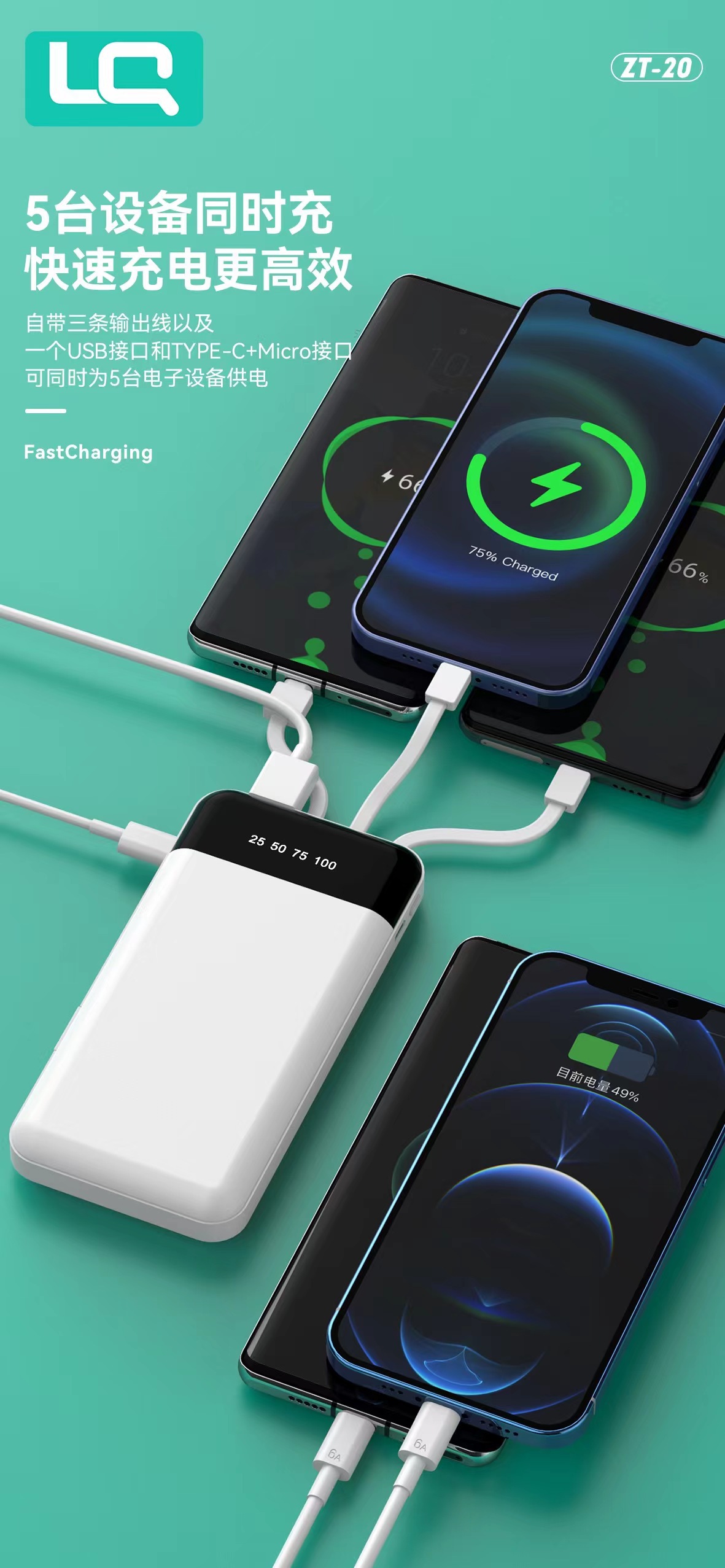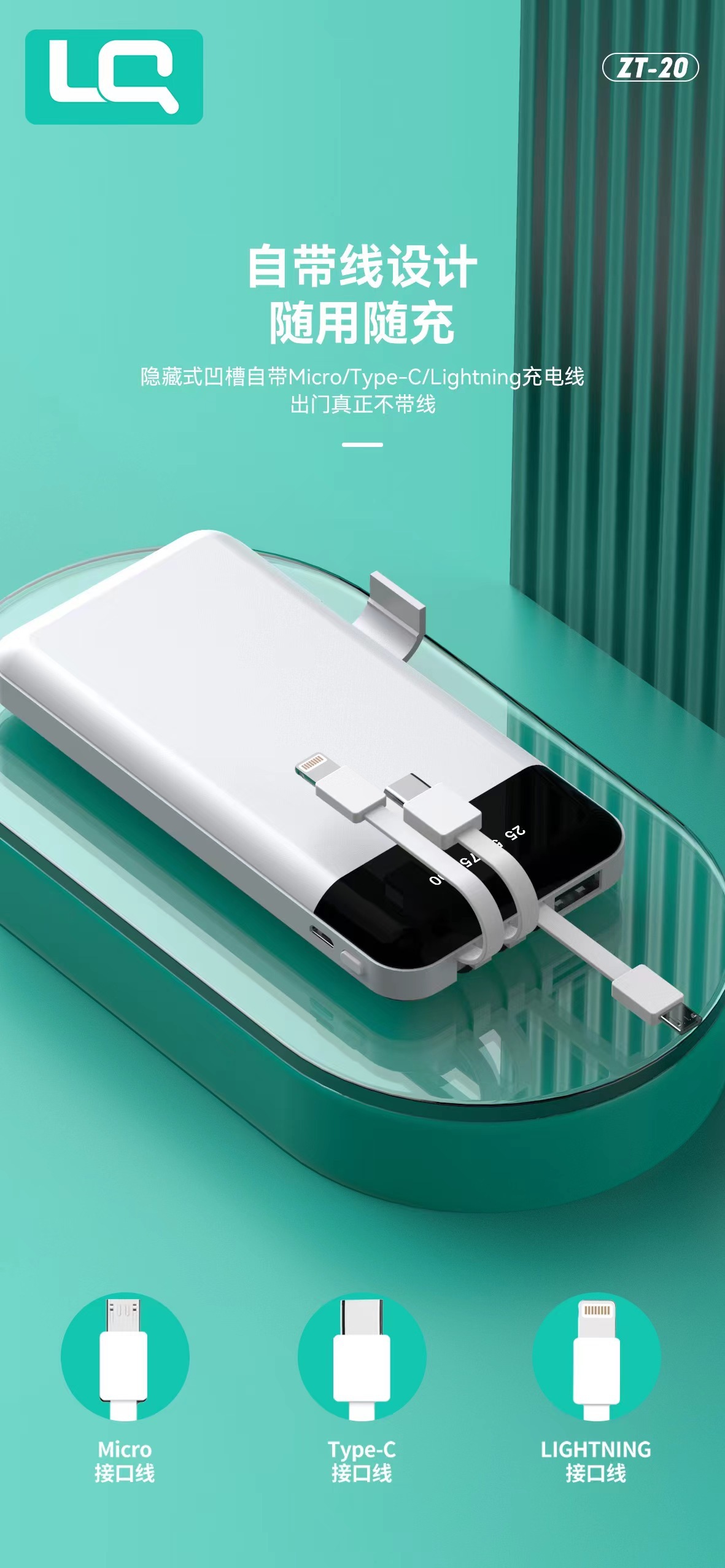 3C certification comes with three-wire real standard 10,000 mAh power bank polymer light and thin digital display fast charging mobile power supply