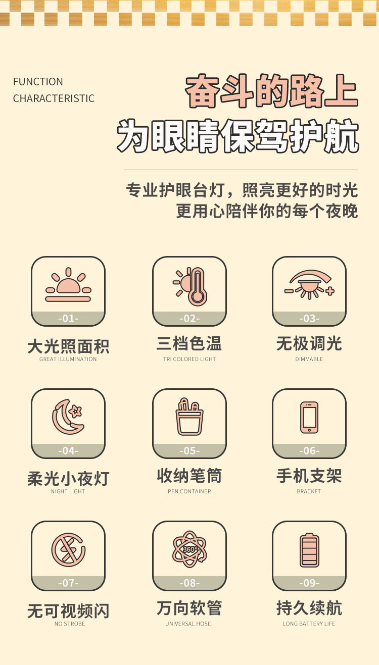 Desk lamp, learning eye protection, writing homework, plug-in charging model, learning dormitory bed head with advanced sense stall bedroom