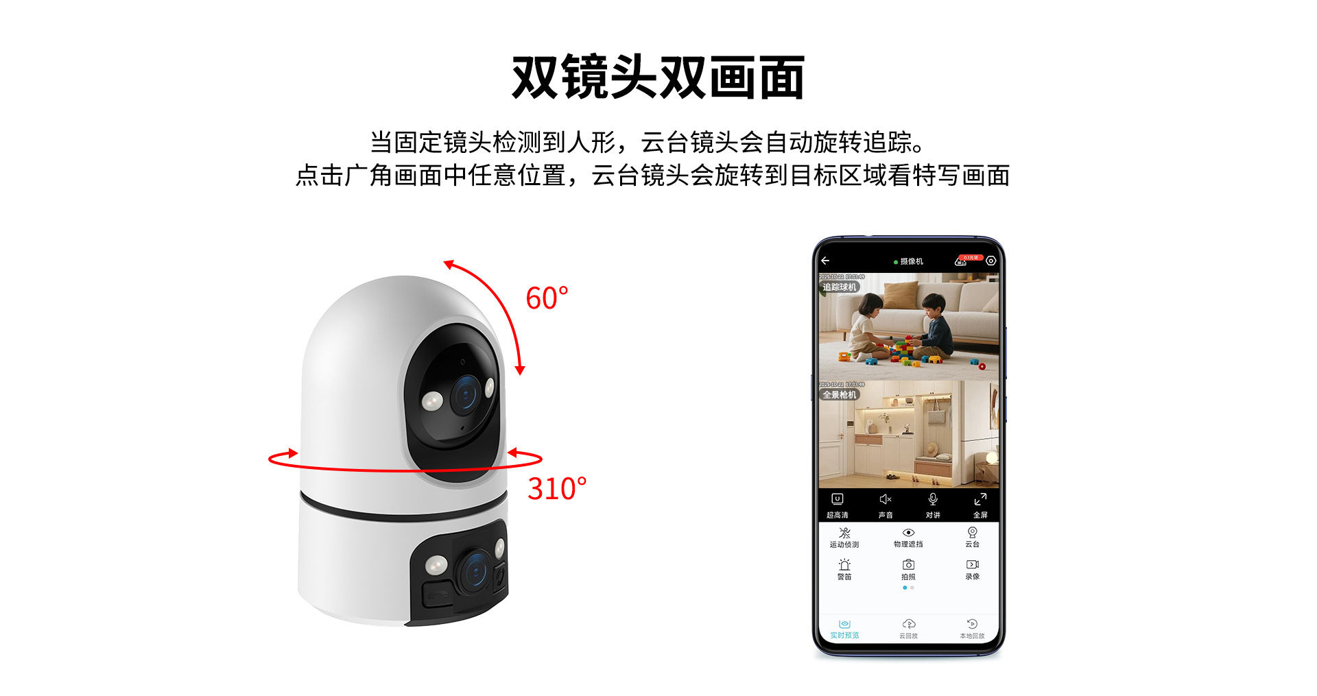 Factory direct supply binocular surveillance camera home store use 360 ° wireless WiFi dual screen monitor