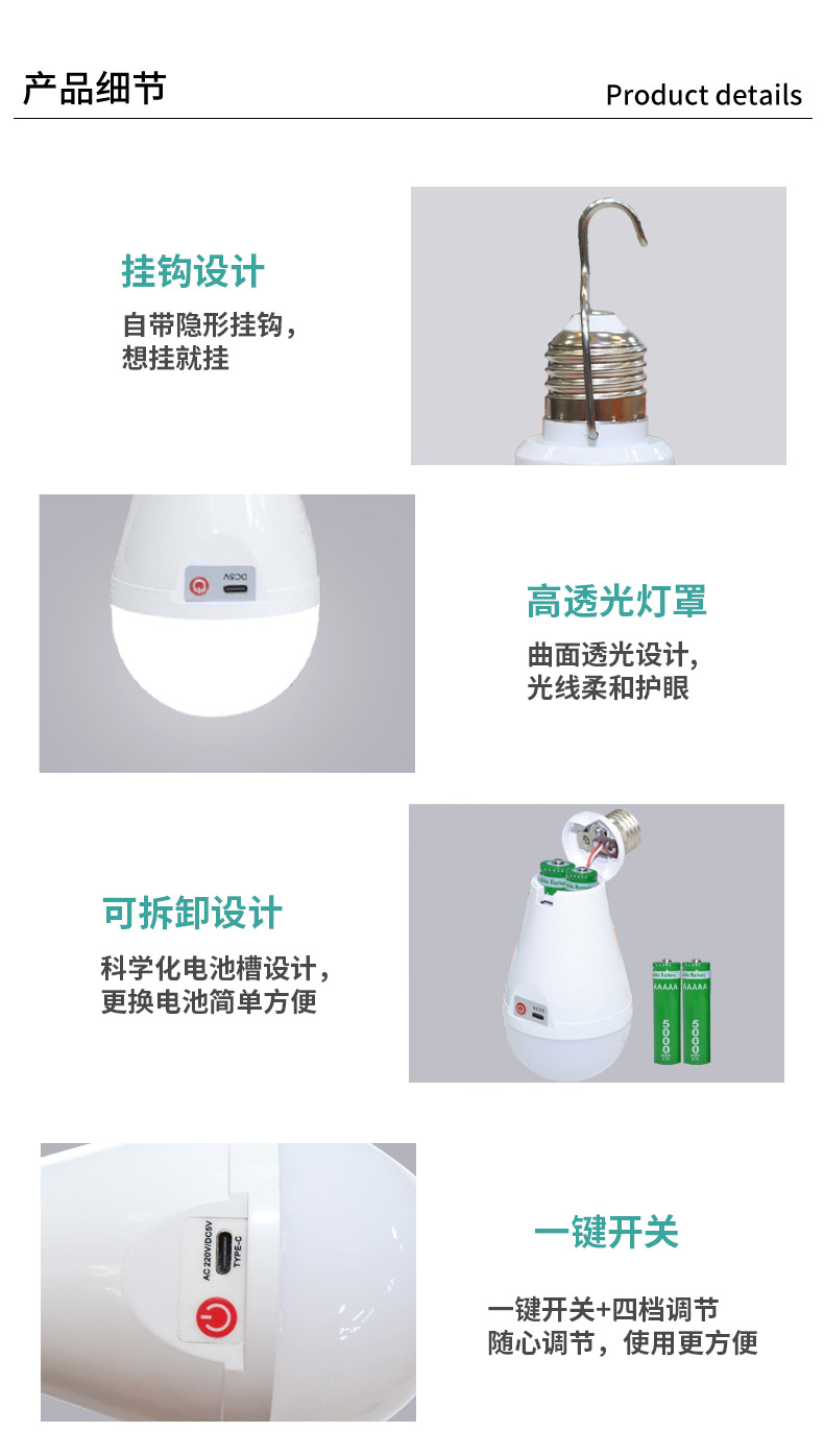 Intelligent led light bulb E27 screw emergency light bulb energy saving wholesale household high-brightness emergency lighting charging emergency light