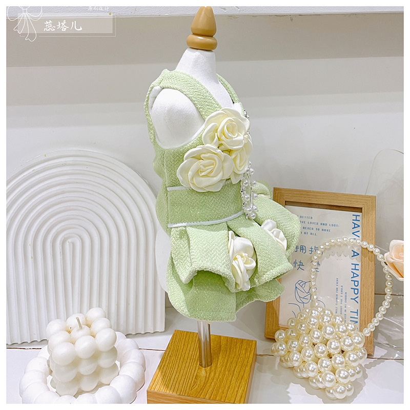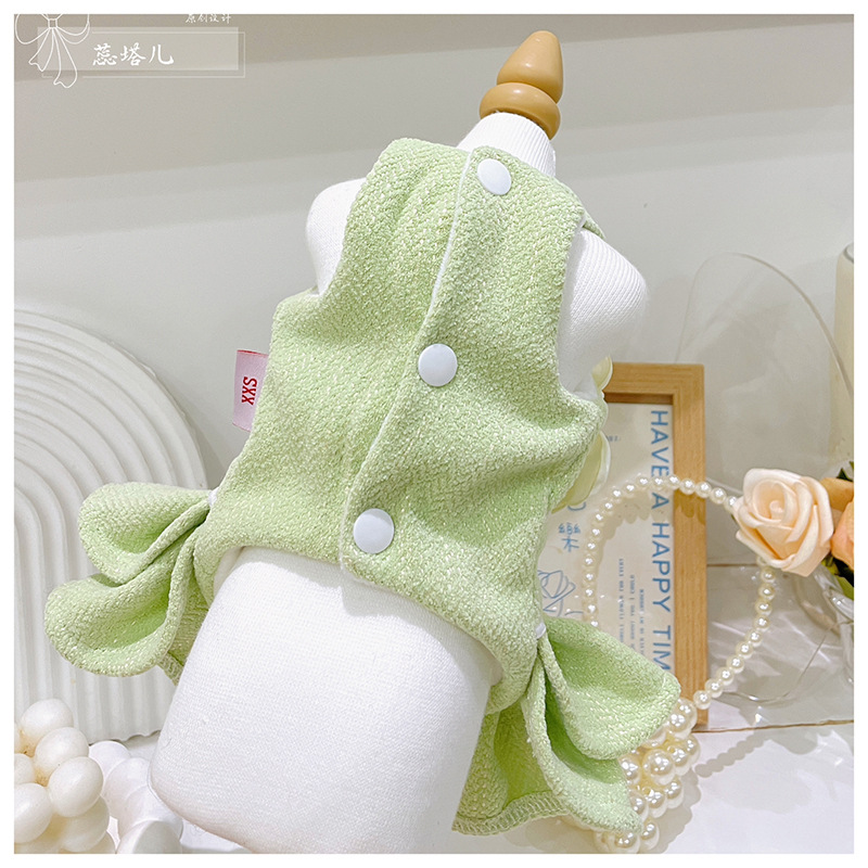 Maltese Yorkshire woolen dress small dog plush princess dress autumn and winter matcha green dress canopy skirt