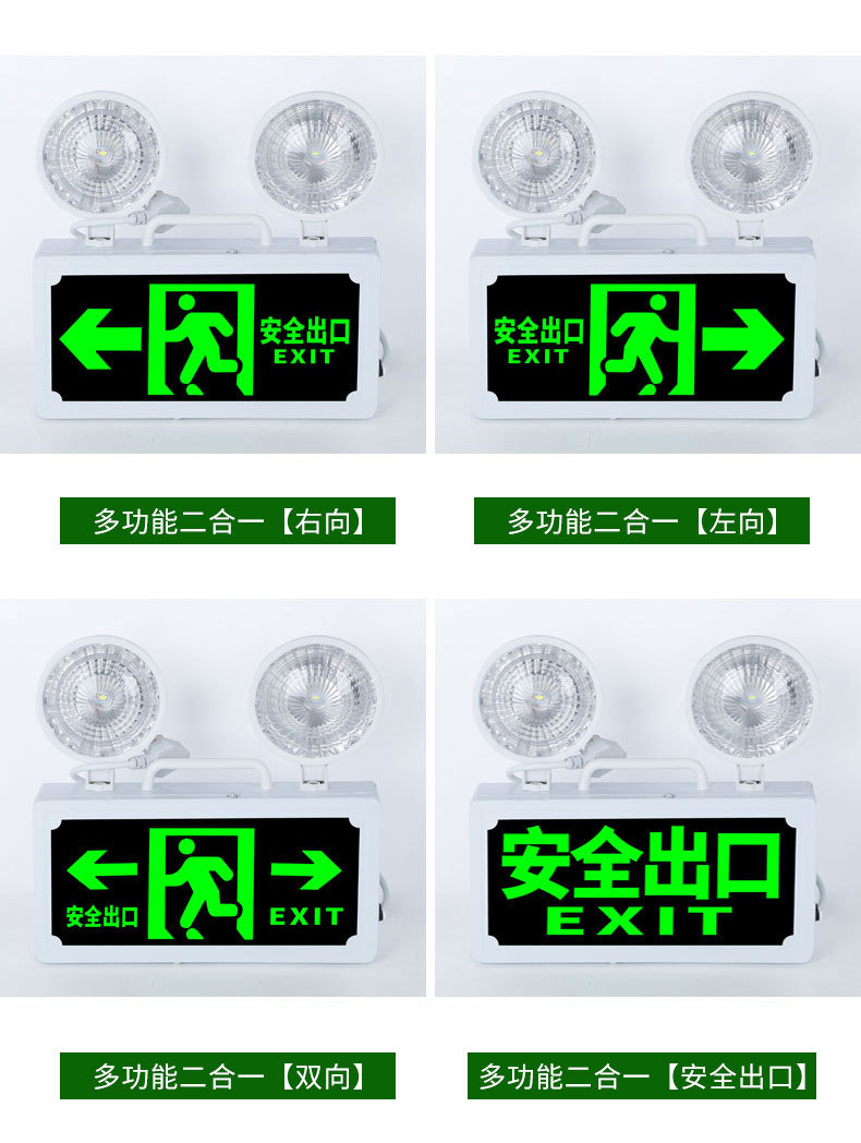 New national standard wholesale fire emergency light LED safety exit indicator light sign two-in-one double-head emergency lighting