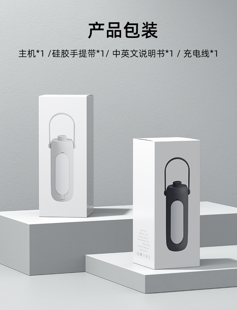 产品附带配件明细:主机*1、硅胶手提带*1、充电线*1、中英文说明书*1