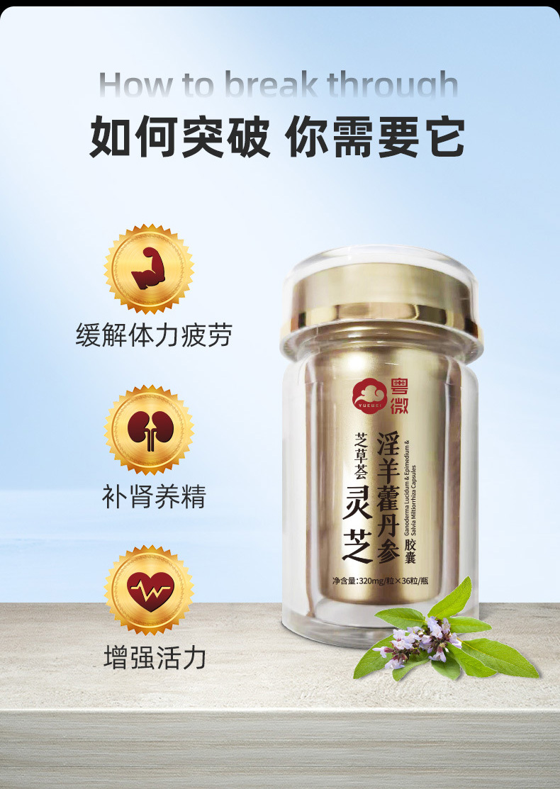Yuewei Ganoderma lucidum Epimedium Danshen Capsules to relieve physical fatigue and protect the liver. Hormone-free men's health products gift box