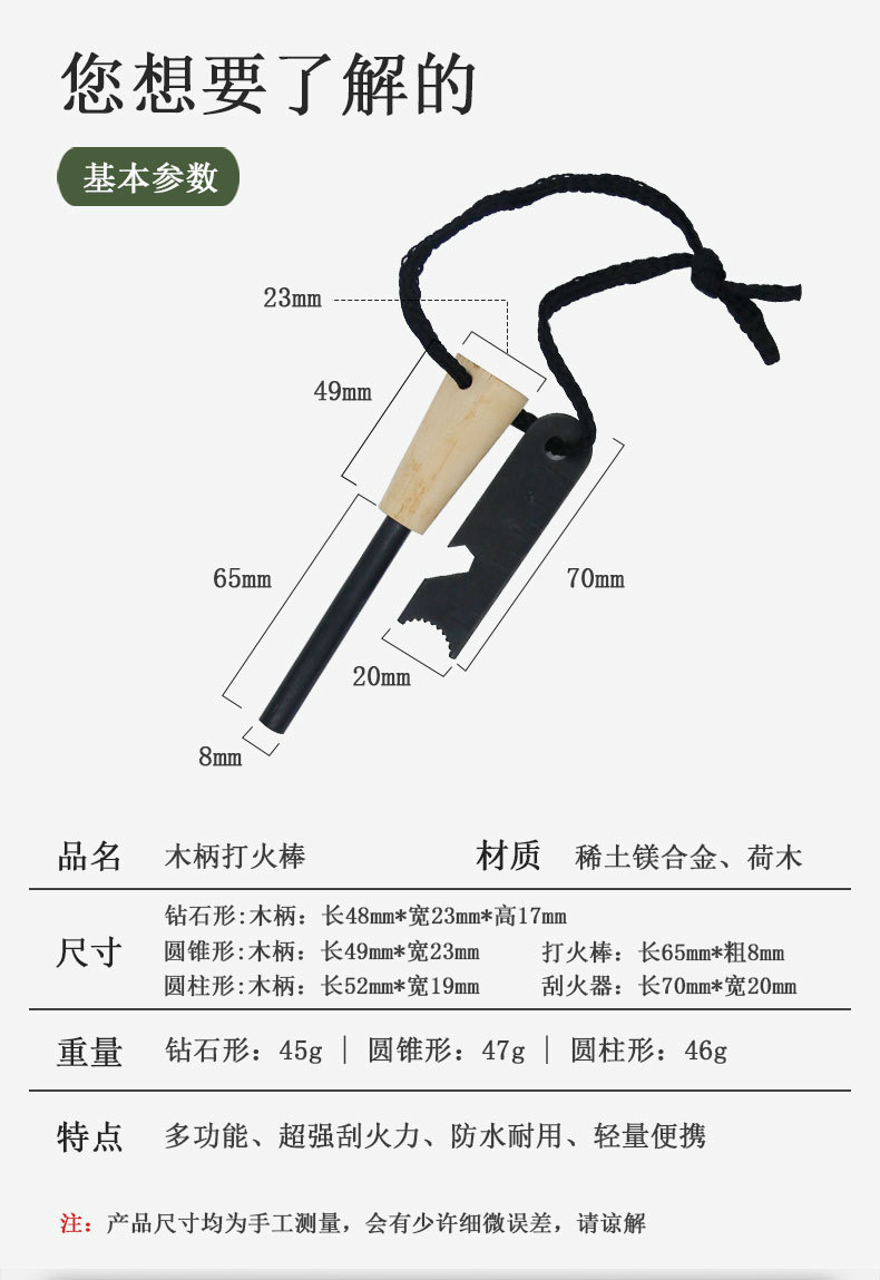 Outdoor Flint Camping Equipment Wilderness Survival Tools Magnesium Rod Fire Picker Wooden Handle Fire Rod Hiking