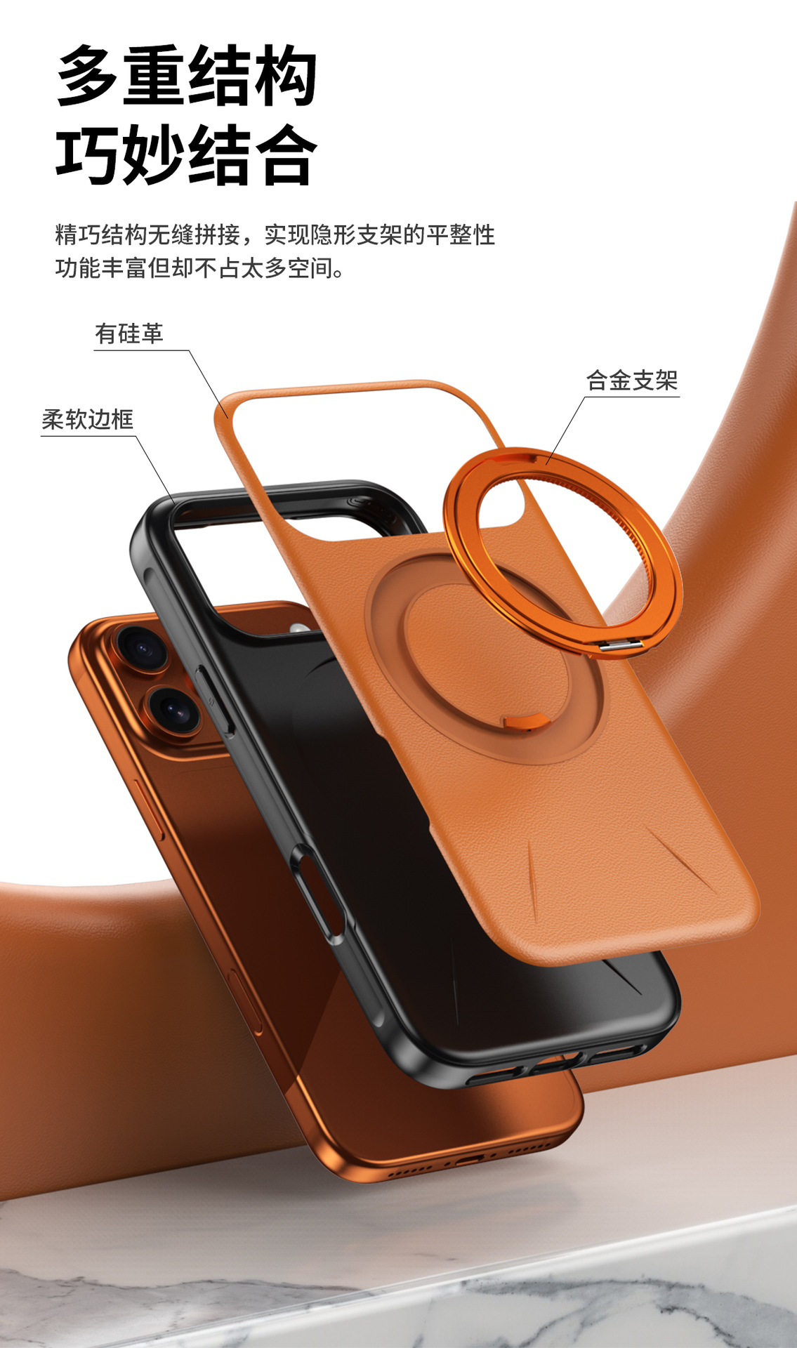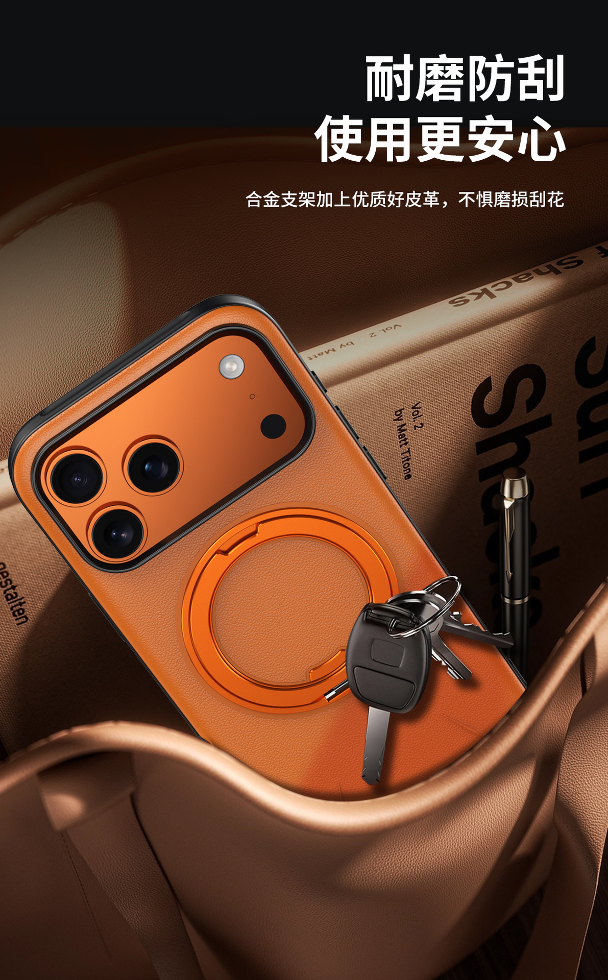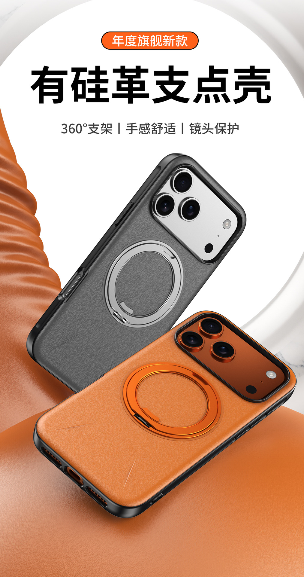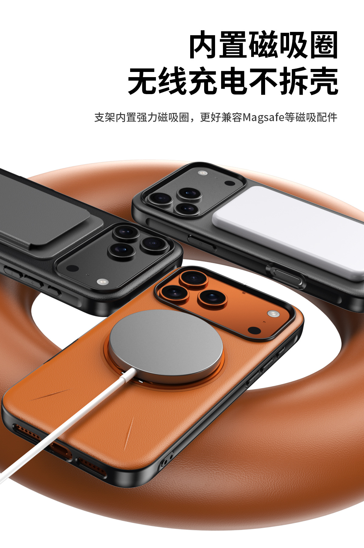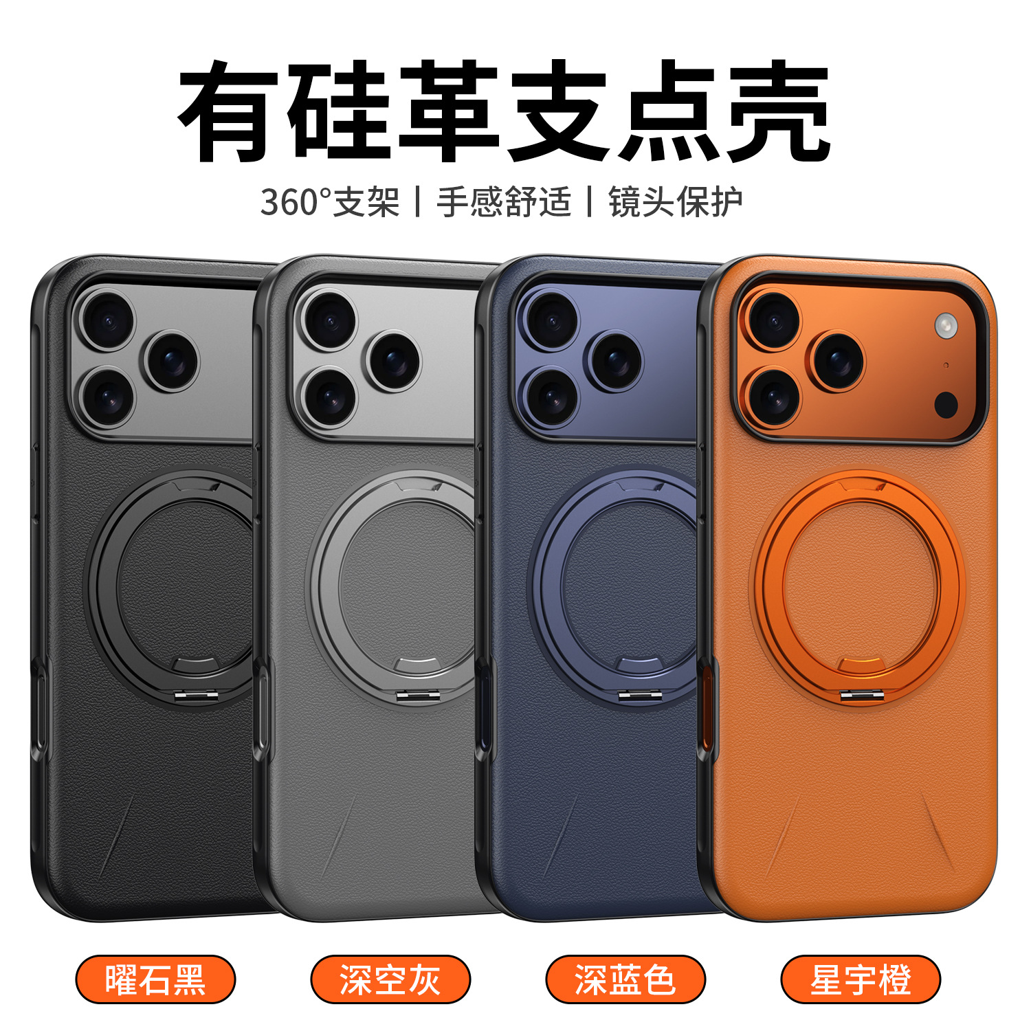 The new rotating invisible bracket is suitable for iPhone17promax mobile phone case, leather magnetic suction Apple 16 protective case.